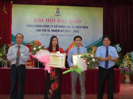 Nhân dịp này, Công đoàn Cao su Việt Nam trao bức trướng cho cán bộ, đoàn viên, công nhân viên chức lao động Công ty CPCS Điện Biên kỷ niệm 10 năm thành lập và phát triển (7/12/2007 – 7/12/2017) với chủ đề “Đoàn kết – dân chủ – đổi mới vì sự phát triển bền vững của doanh nghiệp vì quyền và lợi ích hợp pháp, chính đáng của người lao động”; trao Bằng khen cho Công đoàn Công ty CPCS Điện Biên; bà Trần Thị Hải Minh, Kế toán trưởng Công ty CPCS Điện Biên vì đã có thành tích xuất sắc trong phong trào công nhân viên chức, lao động và hoạt động công đoàn nhiệm kỳ 2012 – 2017; Liên đoàn Lao động tỉnh Điện Biên trao Bằng khen cho Công đoàn cơ sở Công ty CPCS Điện Biên vì đã có thành tích xuất sắc trong phong trào thi đua xây dựng tổ chức công đoàn vững mạnh giai đoạn 2012 – 2017.