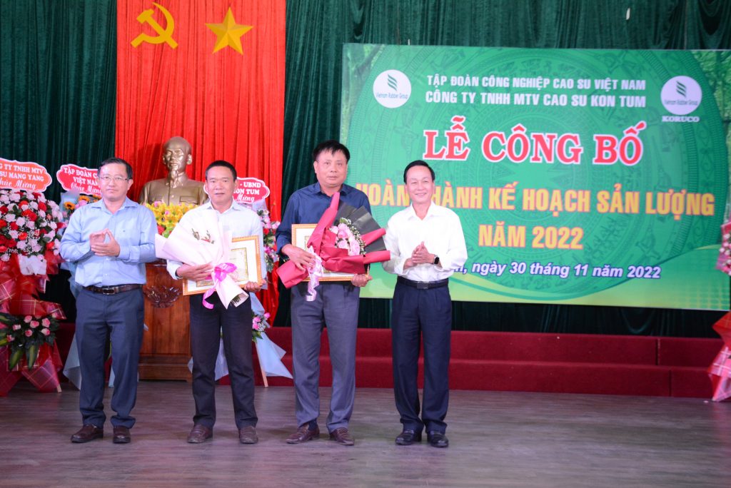 30/11/2022Cao su Kon Tum đã khai thác được 9.965,2 tấn, đạt trên 100% kế hoạch, về đích trước thời gian 37 ngày, năng suất bình quân 1,84 tấn/ha. Đây là năm thứ 11 công ty giữ vững danh hiệu thành viên CLB 2 tấn/ha. Đó là nội dung chính được công ty thông báo tại Lễ công bố hoàn thành sản lượng năm 2022 vào sáng 30/11.